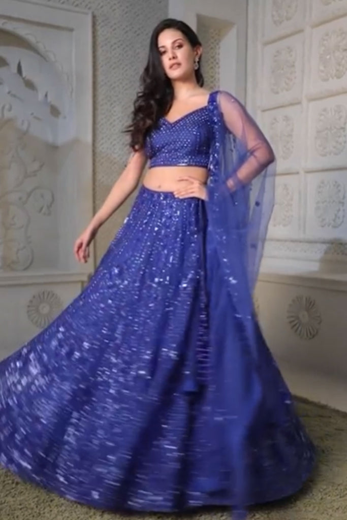 An Electric Blue Lehenga Set Embroidered Meticulously With Delicate Tonal Sequins, Budle Beads And Crystals.