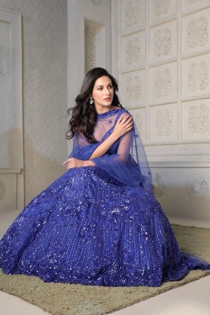Amyra Datur in Tonal Electric Blue Lehenga Set
