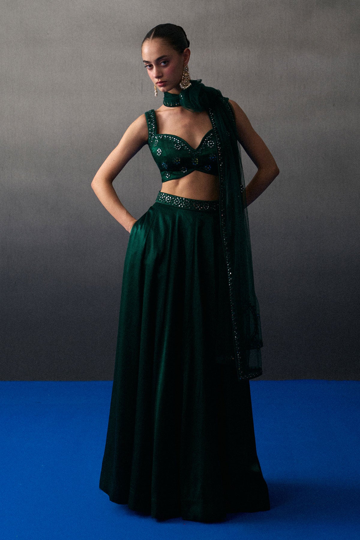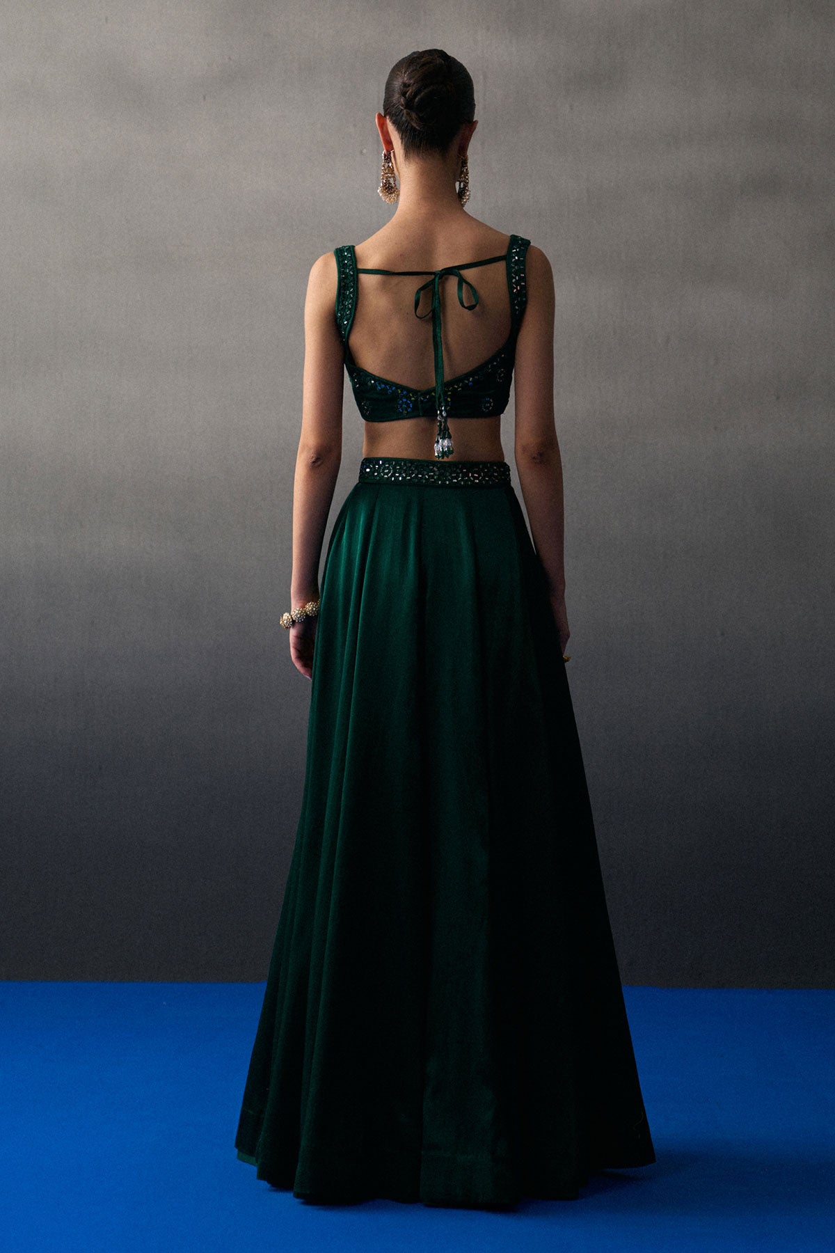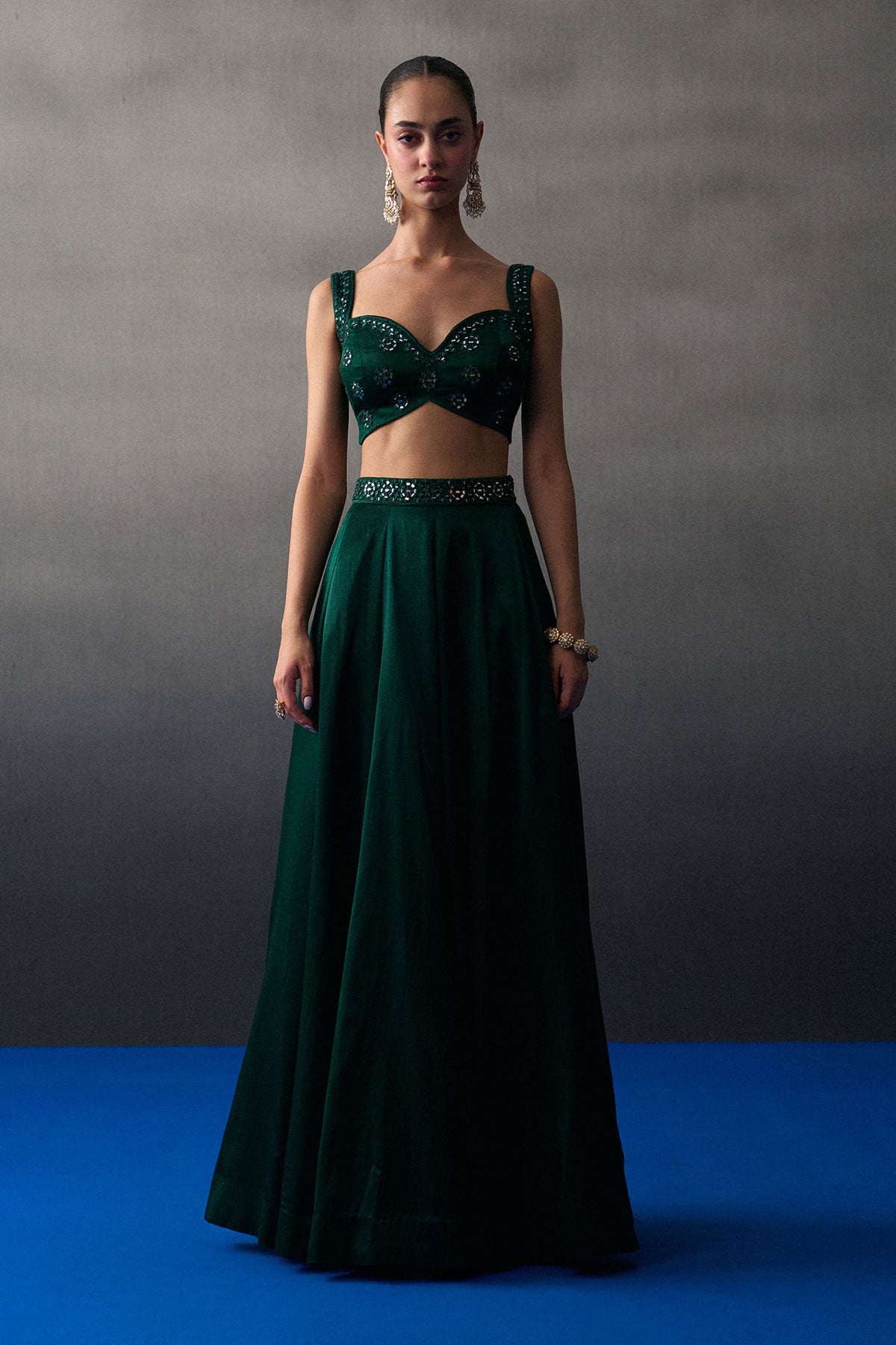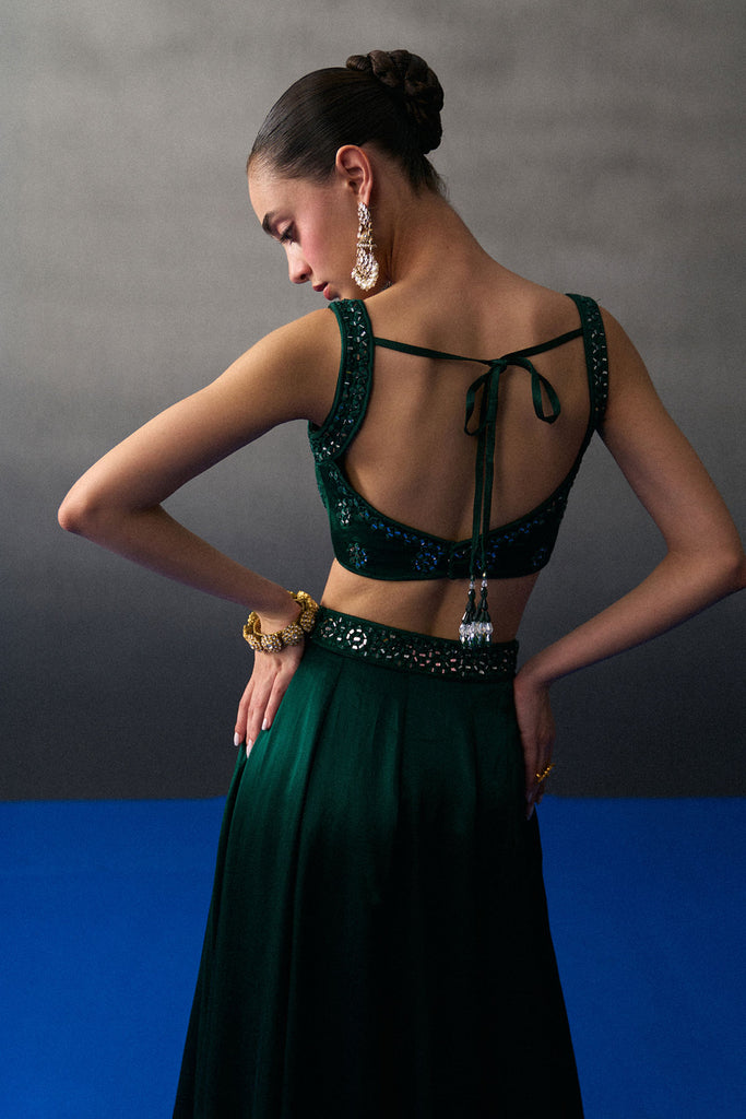 Emerald Green Satin Skirt Set