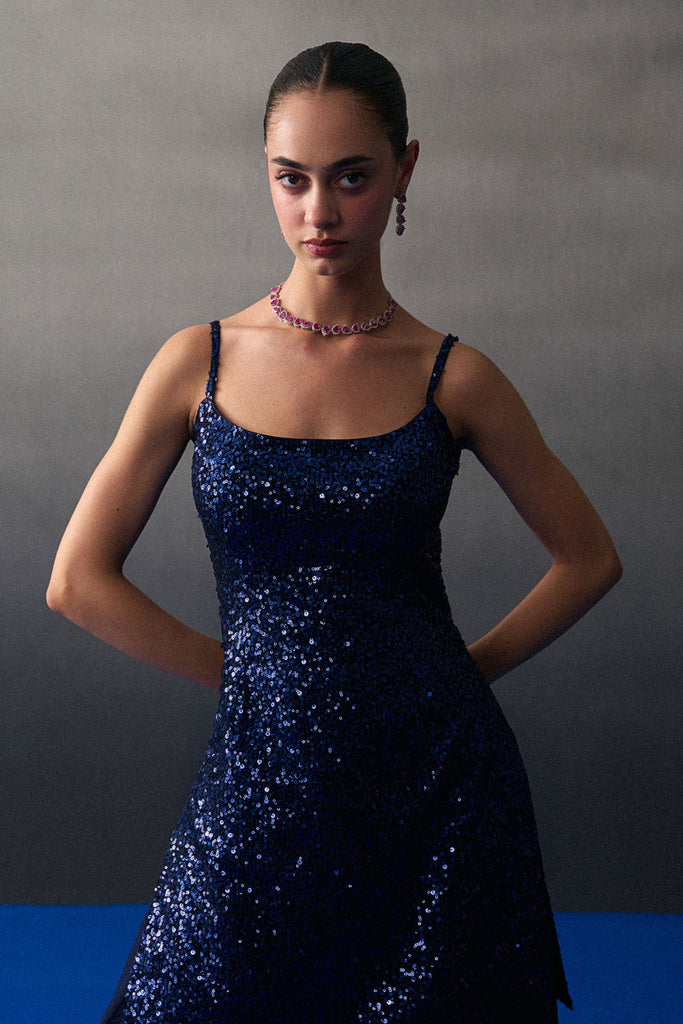 Midnight Blue Sequins Saree