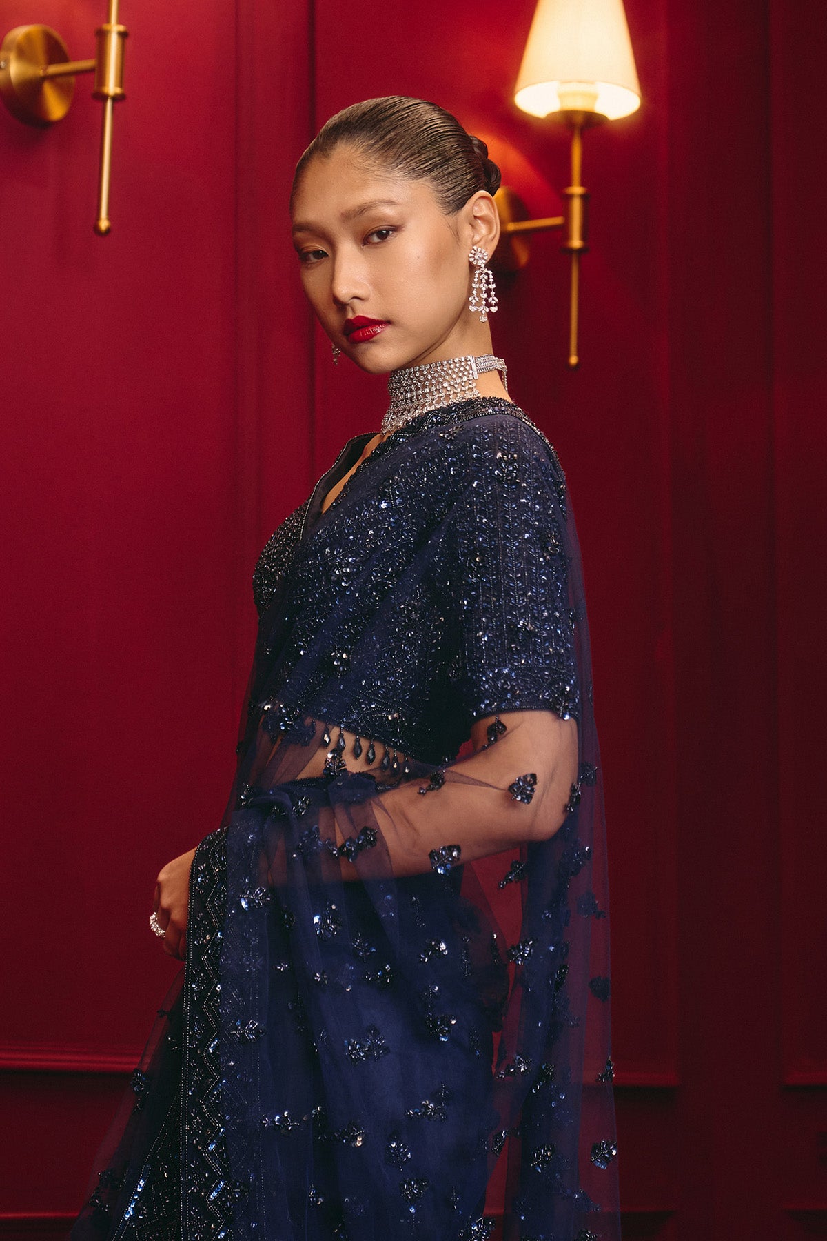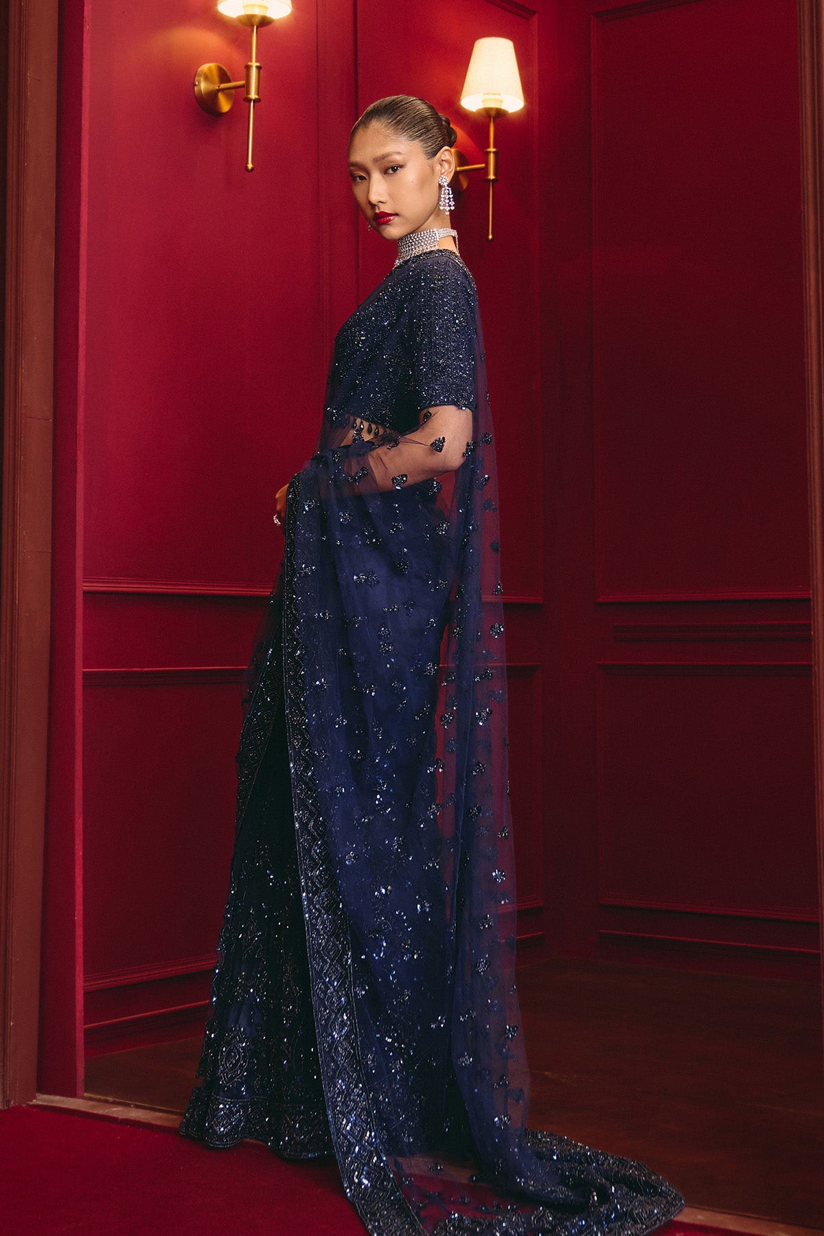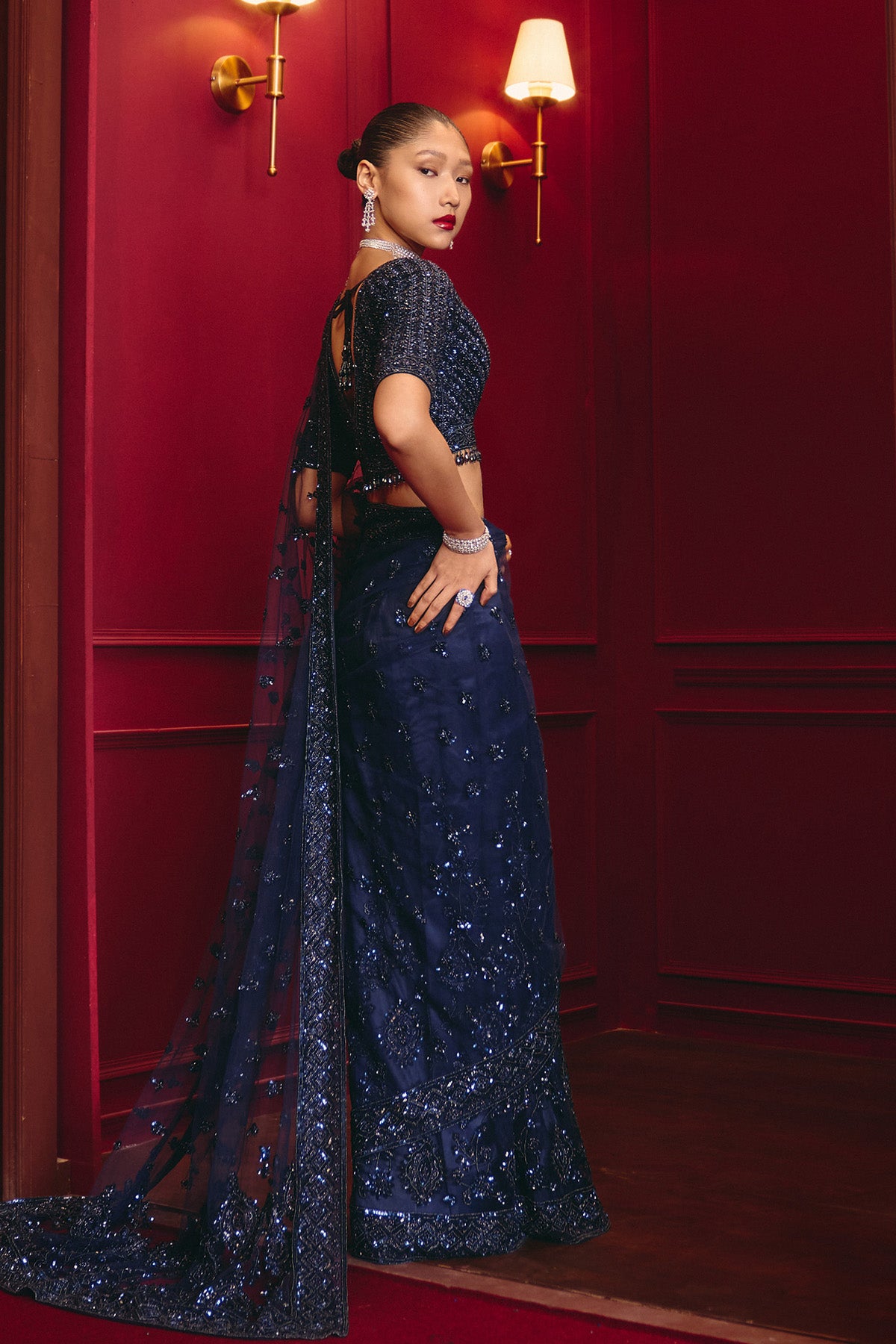 Midnight Blue Net Saree Set